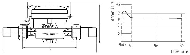 外形尺寸 OVERALL DIMENSIONS 流量誤差曲線 FLOW-ERROR CURVE