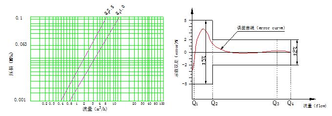 壓力損失曲線 Pressure loss curve 示值誤差限與流量曲線FLOW-ERROR CURVE