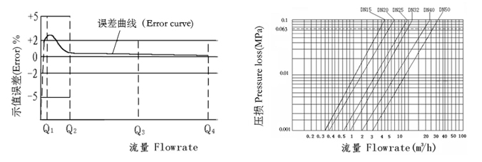 從分界流量到過載流量為:水溫≤30℃時為±2%,水溫>30℃且≤90℃時為±3% ; 從最小流量到分界流量(不包括分界流量)為±5%.