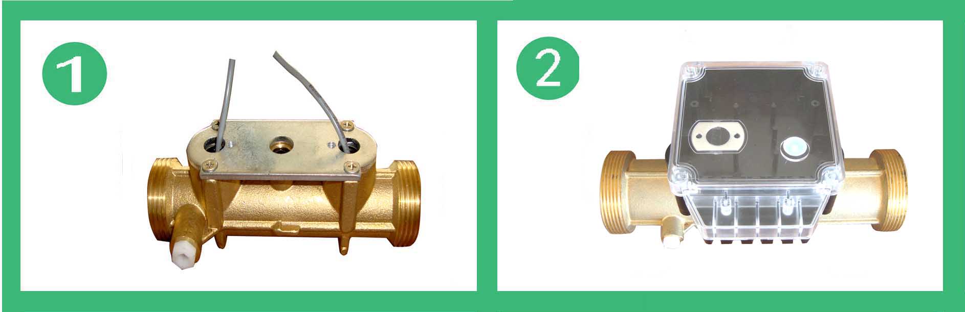 b.樓棟型熱量表超聲波流量計由表殼、換能器、換能器座組成。順流方向和逆流方向,換能器1或換能器2發射的超聲波信號由換能器2或換能器1接收。