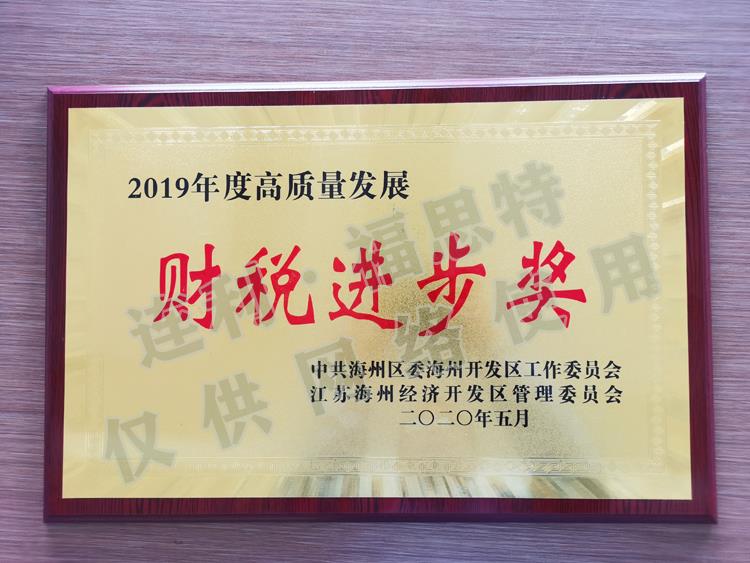 此次被授予2019年度高質量發展“財稅進步獎”是一種榮譽,更是一種激勵。公司上下將繼續規范提升企業管理水平,繼續發揮誠信納稅的模范作用,弘揚依法誠信納稅意識,為當地經濟的發展做出積極貢獻,共同譜寫城市發展的華麗篇章!